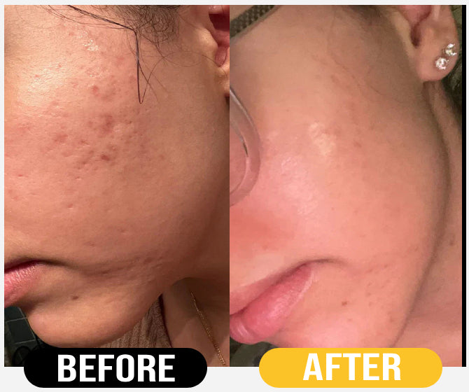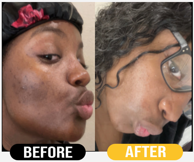 “ I am in love with your products. here are my before and after and still working on it .. i will get back to you when I reach to my skin goals"